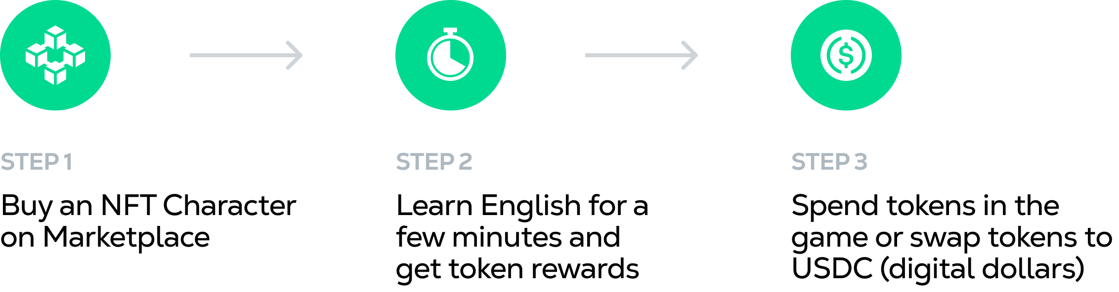 It’s easy to make money by learning English. Buy your own NFT Character on the [LetMeSpeak Marketplace](https://market.letmespeak.org/?utm_source=whitepaper\&utm_campaign=wptomarket) and start earning in-game currency while you learn. If you don't want to use your own money to buy an NFT, you will be able to borrow someone else’s NFT character (launching in Summer 2022) and share the rewards with the NFT owner.