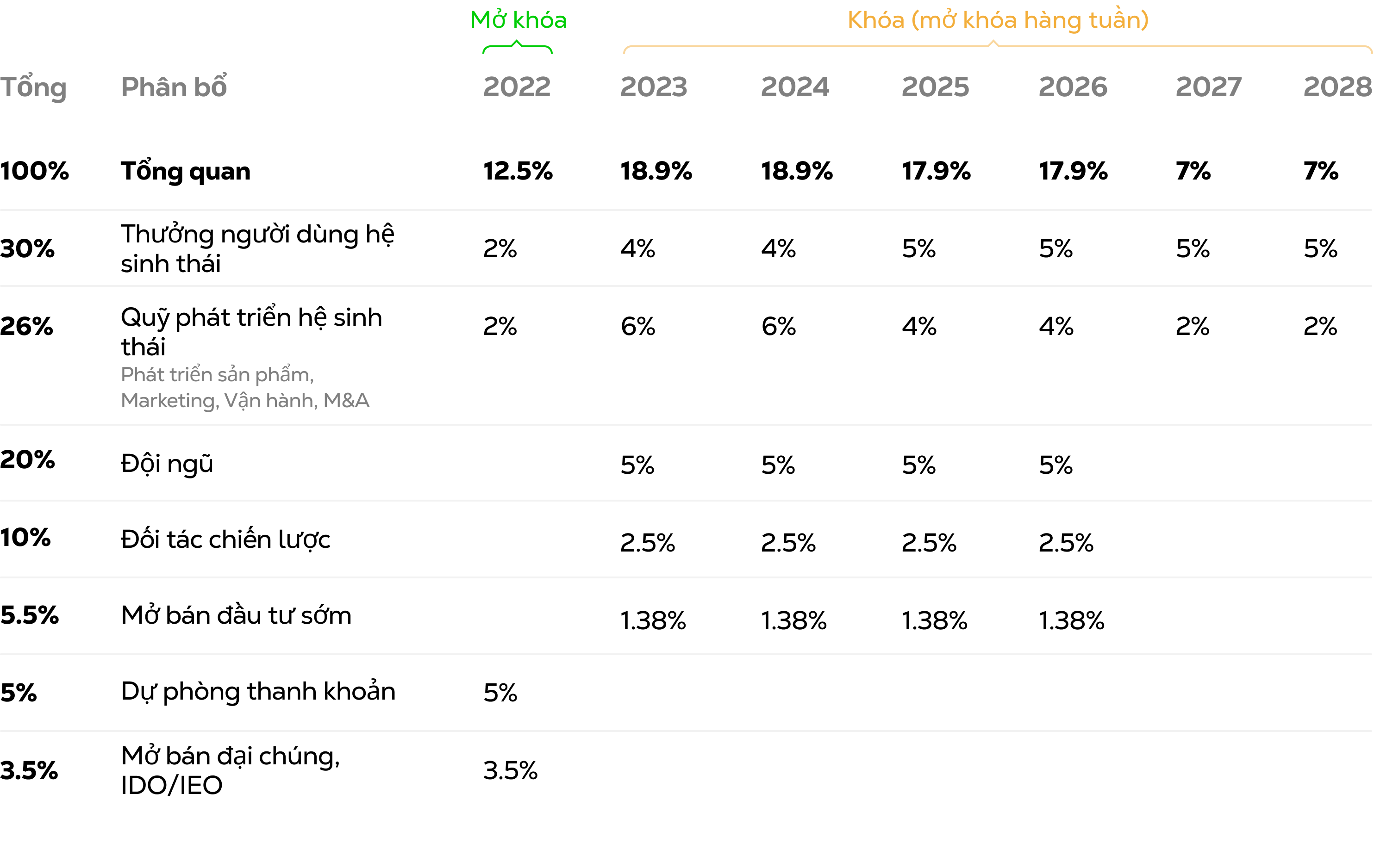 Mức phân bổ token mục tiêu và lịch mở khóa: